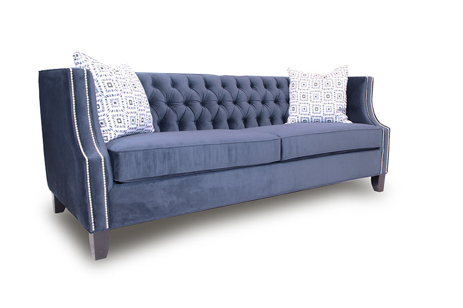 Dark blue classy sofa in velvet.